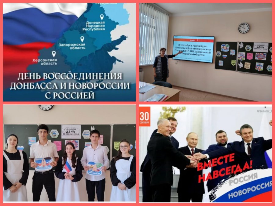 В честь Дня воссоединения с Донецкой и Луганской народными республиками, Херсонской и Запорожской областями в образовательных учреждениях Хабезского муниципального района прошли различные мероприятия.